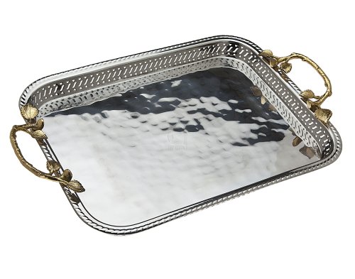 LEAF DESIGN GALLERY TRAY WITH 2 HANDLES