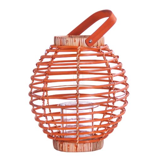 The Detailed Description of 12.5"H BELLY RATTAN LANTERN ORANGEFeatures