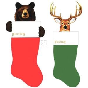 Have a wild holiday with this handcrafted Christmas Stocking! SAVE BIG! From the Kurt Adler Collection, Christmas Stockings with a "mascot" to go with Santa's reindeer! Any outdoor person, any age, will love one. They're handcrafted in plush fabric, with 3D animal head. Choose red Black Lab with Ducks Unlimited logo (a portion of sales goes to their wetlands conservation program). Or green Deer or red Bear, both with Field & Stream logo. All have fluffy white trim and red rope hanger and are ready to be filled with fun! They range from about 22" to 25" long, weigh 6 to 7 ozs. State Style. Get this holiday fun gift quick! Kurt Adler Collection Christmas Stocking