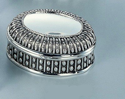 The Detailed Description of BEADED ANTIQUE OVAL BOX, SILVER PLATED.Features