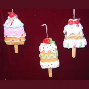 The Detailed Description of 5" CLAYDOUGH ICE CREAM ORNAMENT, SET OF 3 ASSORTED - Christmas Ornament